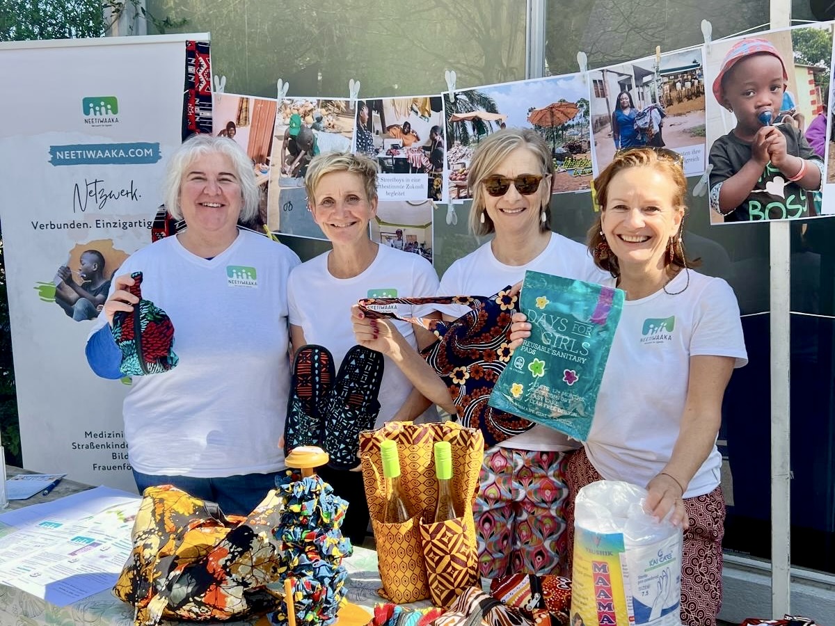 - Verteilung von Monatshygieneartikeln: € 10,- für ein Set wiederverwendbarer Binden für 12 Monate. Ein Beitrag gegen Scham, Ausgrenzung, gesundheitliche Risiken und Periodenarmut.